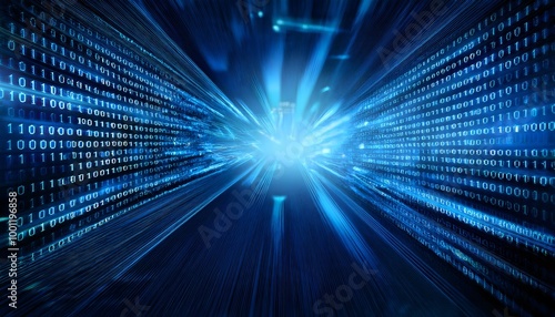 Digital binary code, blue matrix, cyberspace, data stream, virtual reality