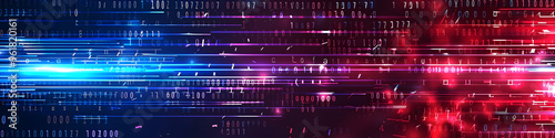 Digital binary code futuristic light data stream technology background virtual reality machine learning cyber security artificial intelligence innovation quantum computing neural network