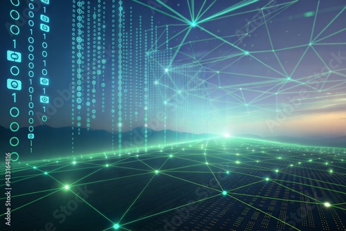 Digital Binary Code Matrix. 3D Visualization of a Complex Data Network in the Modern Digital Age. (Bigdata)