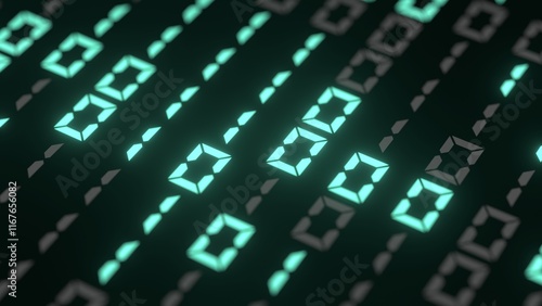 digital binary numbers retro computer language programming 3d illustration. Can be used to represent big data calculator, data encryption or machine learning artificial intelligence