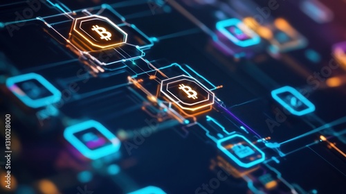 Digital Bitcoin Network Connection, Futuristic Cryptocurrency Concept