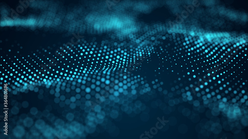 Digital blue wave background of particles. Abstract futuristic dynamic background. Big data visualization. 3D rendering.