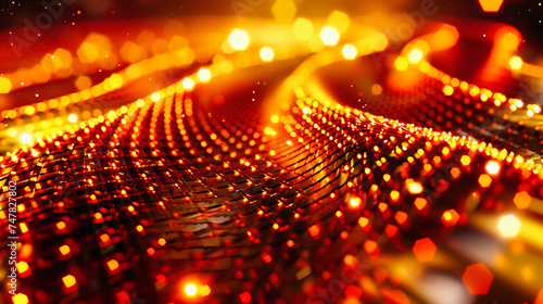 Digital Bokeh Lights and Science Concept, Abstract Background with Virtual Connection and Floating Particles