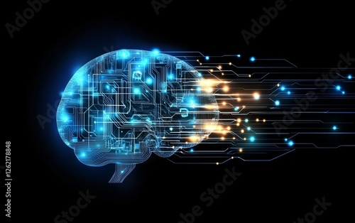 Digital Brain Data Stream, Abstract, Technology, Background, AI