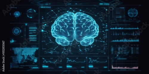 Digital Brain Scan with Data Analysis Displaying Futuristic Technology and Neural Networks