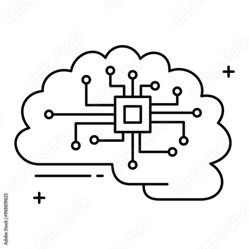 Digital Brain Vector Icon Design, AI brain, artificial intelligence, brain technology, neural networks, digital intelligence