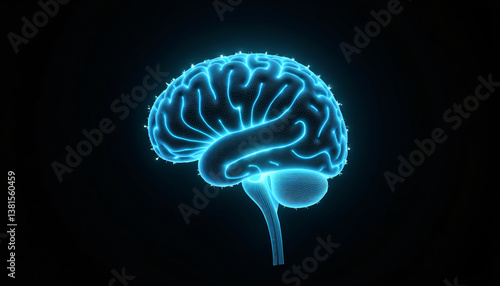 Digital brain visualization exploring neural processes in an abstract dark background concept