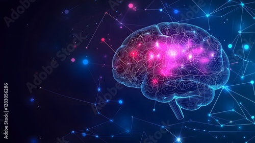 Digital brain with glowing neural networks connection futuristic environment abstract content close-up view for technology advancements