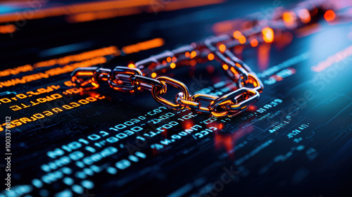 Digital chain symbolizing security and blockchain technology, isolated on black background