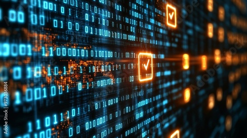 Digital Checkmark, Binary Code, Cybersecurity, Data Security, Network Security, Digital World, Data