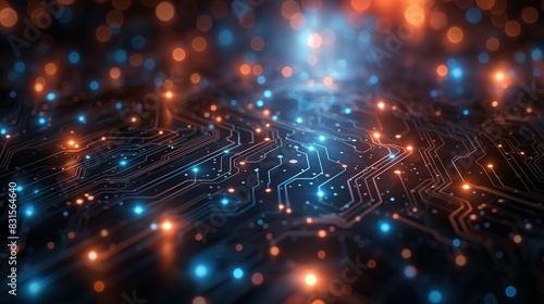 Digital Circuit Board with Glowing Lights