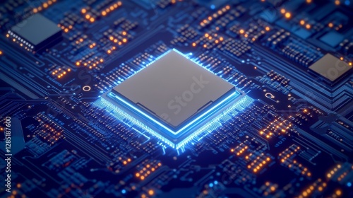 Digital Circuit Board with Processor and Bright LED Lights