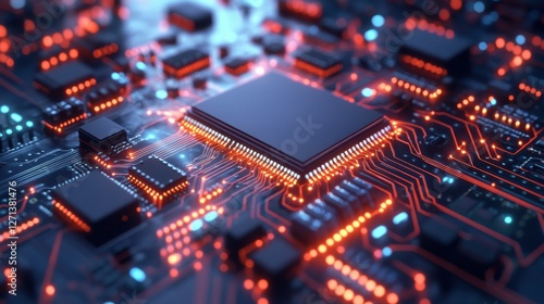 Digital circuit microchip on abstract background. Computing and technology concept. 3D Rendering