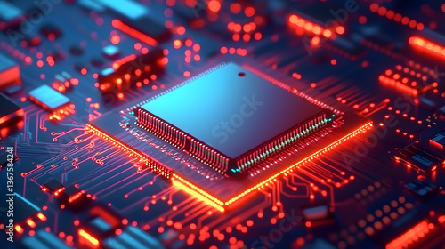Digital circuit microchip on abstract background. Computing and technology concept. 3D Rendering