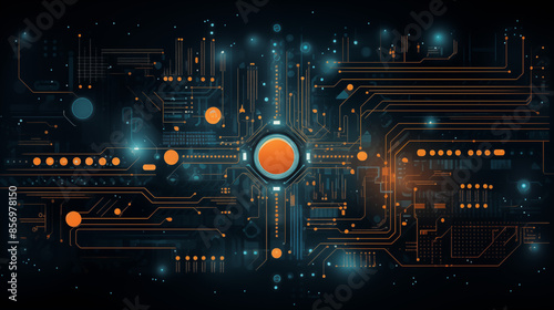 Digital Circuit Network with Central Node and Glowing Pathways