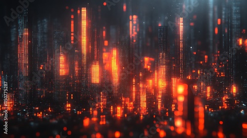 Digital Cityscape Illuminated with Fiery Orange Lights