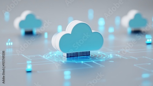 Digital cloud computing concept, showcasing futuristic technology and data storage solutions in an abstract, modern visual.