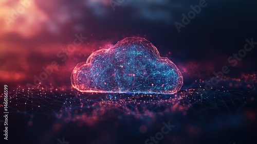 Digital Cloud Computing Data Visualization with Bright Lights and Particle Effects Representing Cloud Storage and Technology Innovation in a Futuristic Style