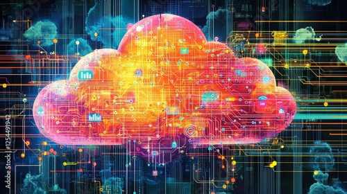 Digital Cloud Computing Network with Interconnected Nodes and Data Streams