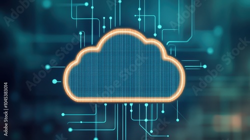 Digital cloud computing symbol against a futuristic background of circuits and data.