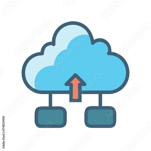 Digital cloud data upload flat vector icon, business information technology concept