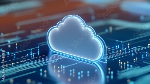 Digital Cloud Icon Surrounded by Circuit Patterns and Glowing Lights Representing Technology and Connectivity