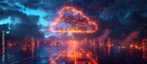 Digital Cloud Network over Futuristic Cityscape