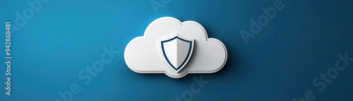 Digital cloud surrounded by shields, emphasizing cloud security protocols, Cloud Security, Protected Data