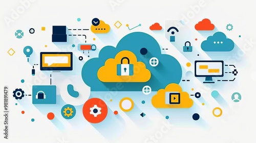 Digital cloud technology background featuring cloud storage icons and data synchronization concepts