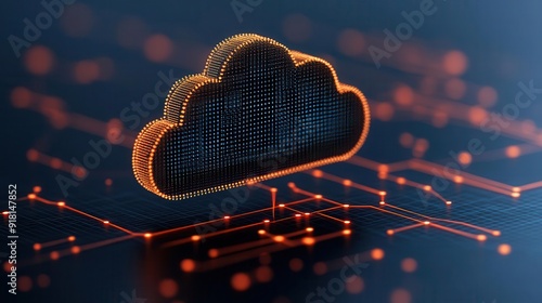 Digital cloud technology concept, graphic representation of cloud computing and electronic data network on a dark background.