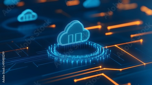 Digital cloud technology illustration showcasing data transfer and connectivity, representing modern cloud computing and network infrastructure.