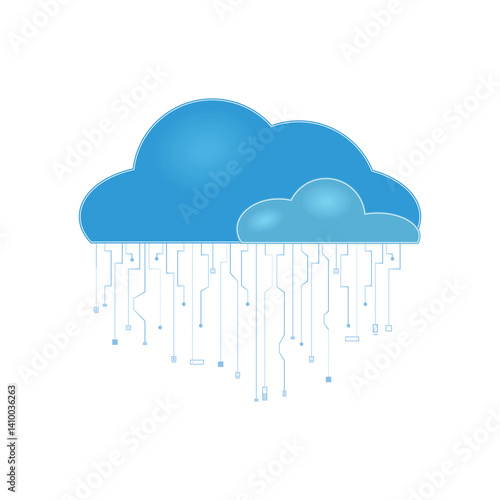 Digital cloud technology illustration with circuit connections flowing downward, tech network concept