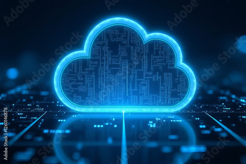 Digital cloud technology with glowing blue design and data patterns