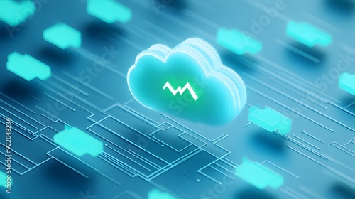 Digital cloud with futuristic icons representing data and technology. Visual metaphor for cloud computing and network connections.