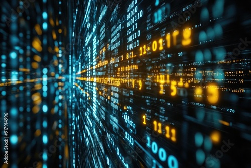 Digital Code Abstract Background with Binary Numbers and Data Streams