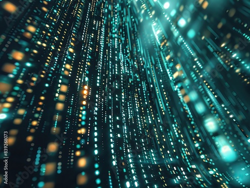 Digital code in a binary stream with a matrix style, creating a complex and tech savvy visual with ample copy space