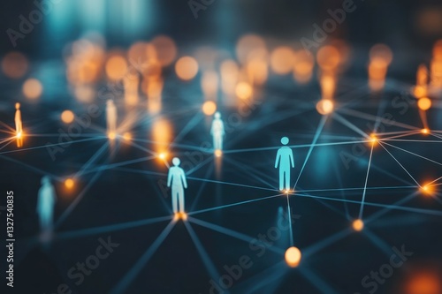 Digital connection and networking concept illustrating people in interconnected nodes with lights