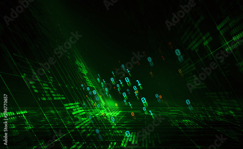 Digital Cyberspace. Network and global database. 3D illustration of clusters of information with a binary code element
