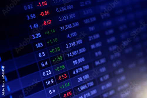 Digital data on screen monitor for stock trading business online