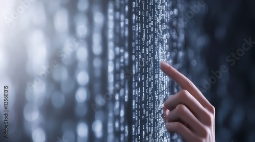 Digital Data Stream Futuristic Technology Hand Interacting with Binary Code Innovation Programming