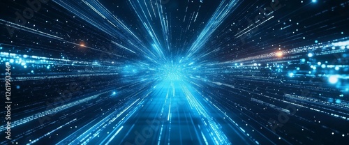 Digital data stream tunnel, cyberspace, glowing background, website banner