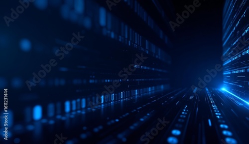 Digital Data Stream with Blue Illumination