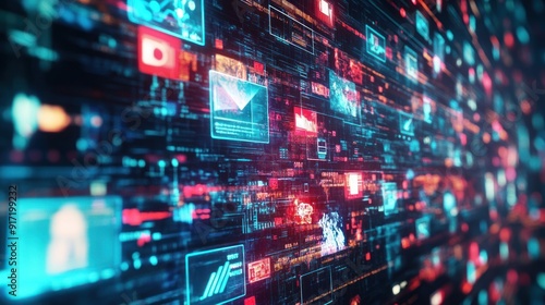 Digital Data Stream with Red and Blue Interfaces