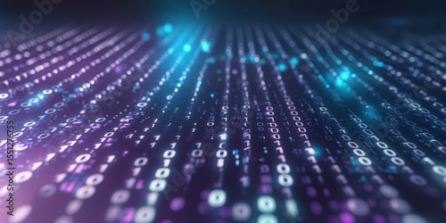 Digital data streams create a dynamic visual representation of binary code in a futuristic setting