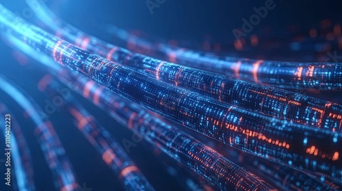 Digital Data Streams Flowing Through Cyber Cables