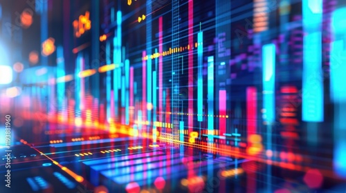 Digital data visualization with colorful graphs and charts