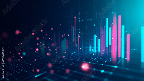Digital Data Visualization with Neon Blue and Pink Bars, Highlighting Modern Technology, Financial Analysis, and Innovation in a Futuristic Style