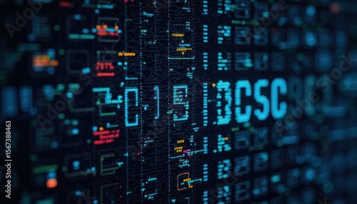 Digital display with various data and code elements.