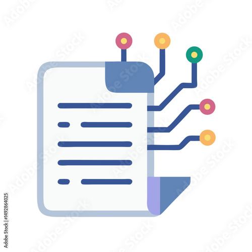 Digital Document with Connected Network Nodes on White Background