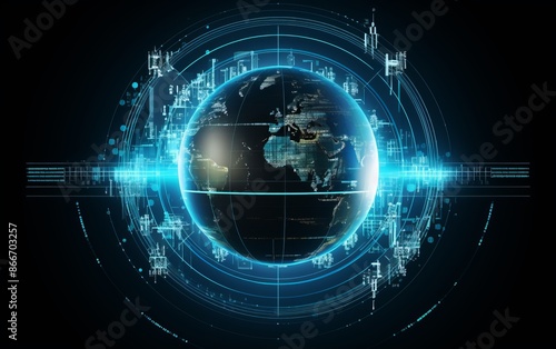 Digital Earth with glowing lines and data, representing global network, communication, and technology